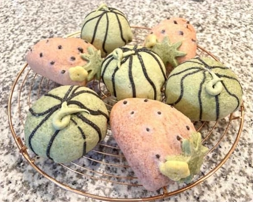 切ってもパン2種(にこちゃん・こぶた)クッキーパン(すいか・イチゴ)丸めパン(クマとウサギのかくれんぼ)